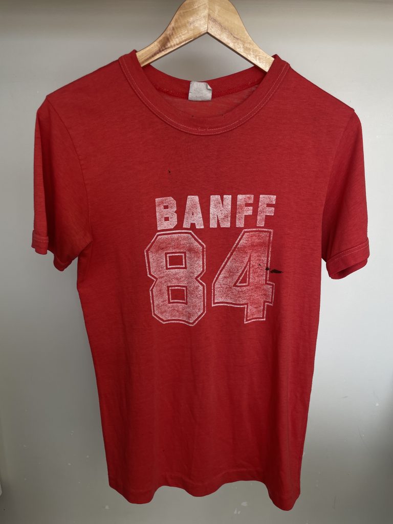 Oh, and let’s not forget about my old Roots sweater. That bad boy is staying put — it’s like a big bear hug from my Canadian roots (pun intended). Then there’s the ‘Banff 86’ tee I snagged on a thrift store run with my cousin. Sure, it’s just collecting dust now, but it’s like a time machine back to laughing with all the shenanigans we got up to in those old red tees. It’s never going to see the light of day again, but ditching it? Nope, that’s a hard pass. It’s the fabric equivalent of a family photo.