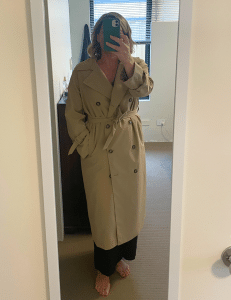 That’s the dilemma I face with my “H&M Trench Coat Saga”. Bought because it was chic and affordable, it now serves as a reminder of unrealistic expectations versus reality. The reality is, as a WFH person who lives in a perpetually sunny climate, exactly why did I think I needed a trench coat?